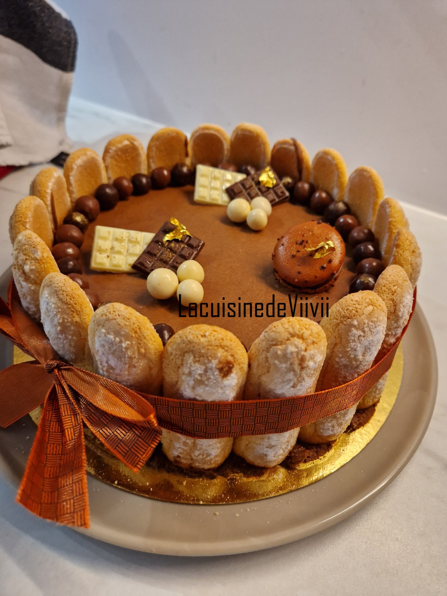 200g de chocolat pâtissier, 100g de beurre, 30g de sucre glace, 24 biscuits cuillères, 200mL de crème liquide entière (+30% de matière grasses), 4 œufs